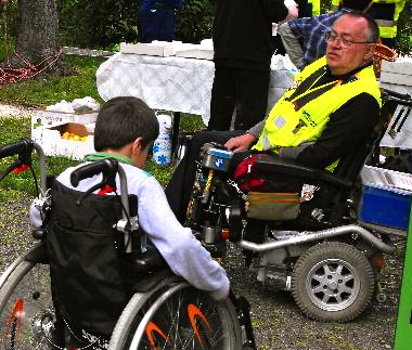 Es gibt zwei alte „wasserfeste“ Rollstühle, mit dem man problemlos zum Sessel-Beckenlift in die Schwimmhalle gelangen kann. (Mit dem Straßenrollstuhl ist es untersagt in die Schwimmhalle zu fahren.)